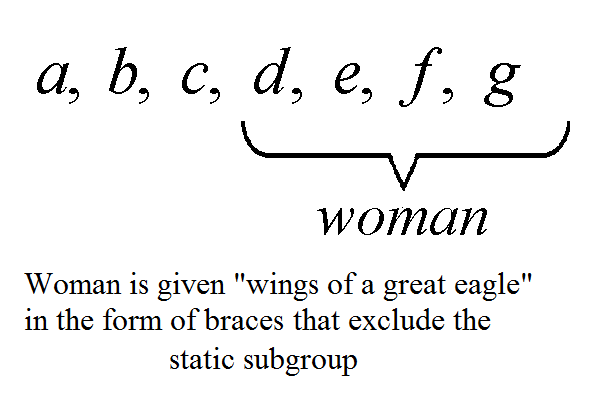 Under the action of the seven cycle we se the woman flies into the wilderness - the place prepared in the earthy elements corresponding to the alternatives for the static subgroup.